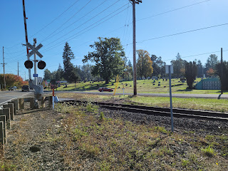 Turn right immediately just past railroad crossing onto Railroad Avenue.